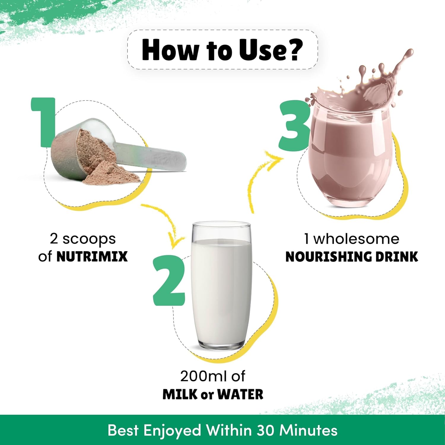 - EASY TO MIX: Just SCOOP 2 servings, MIX with 200ml of milk or water, and DRINK within 30 minutes. For kids 7+ years old, use our Nutrimix with an increased recommended dose to meet their elevated nutritional needs.